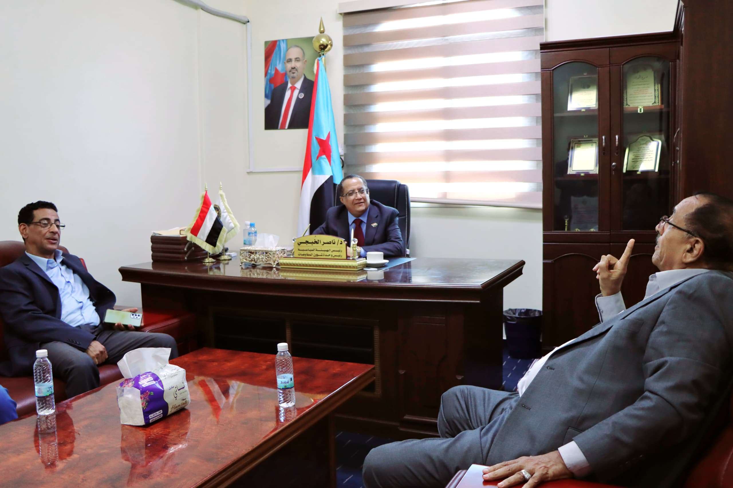 التقى الدكتور ناصر الخُبجي، رئيس الهيئة السياسية المساعدة رئاسة المجلس الانتقالي الجنوبي ورئيس وحدة شؤون المفاوضات، يوم الأربعاء، في مكتبه بالعاصمة عدن، بالأستاذ عوض بن عوض الصلاحي، نائب محافظ لحج, الأمين العام للمجلس المحلي بالمحافظة.