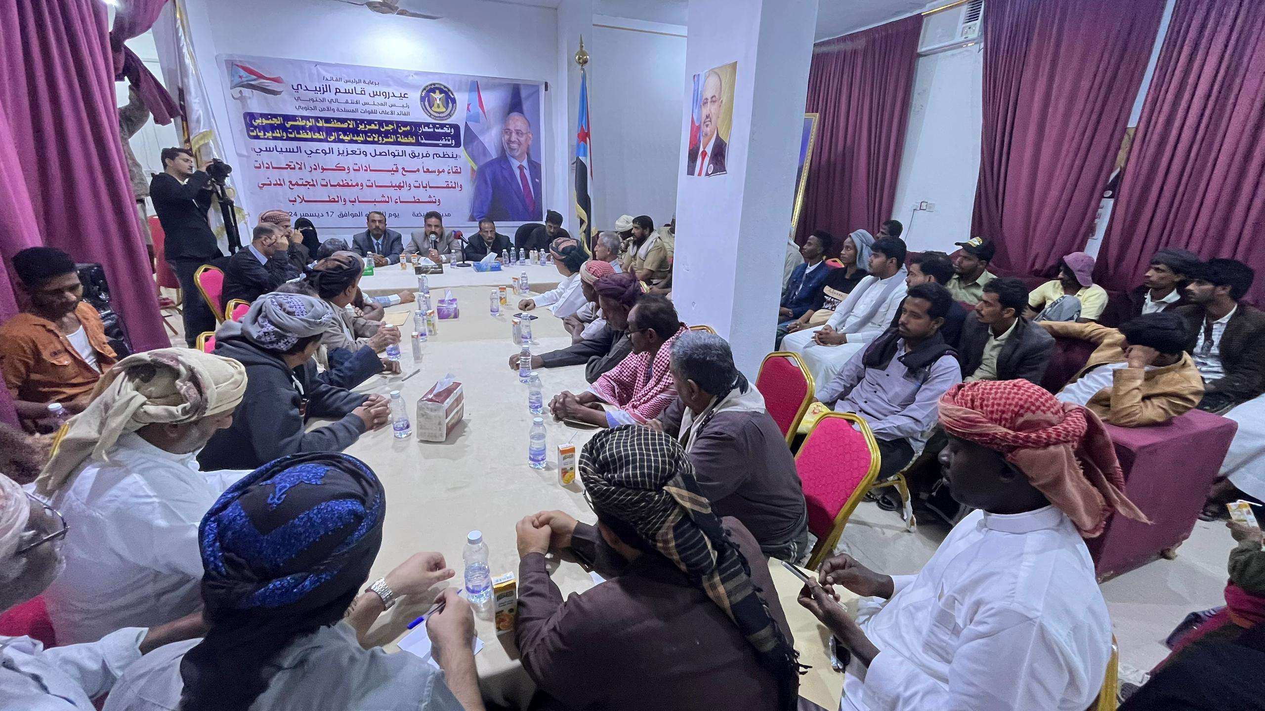 التقى فريق التواصل وتعزيز الوعي السياسي في المجلس الانتقالي الجنوبي، برئاسة عضو هيئة الرئاسة، الدكتور سالم علي القميري، يوم الثلاثاء، قيادة وكوادر الاتحادات، والنقابات المهنية، والهيئات، ومنظمات المجتمع المدني، والنشطاء من الشباب والطلاب، في مديرية الغيضة بمحافظة المهرة.