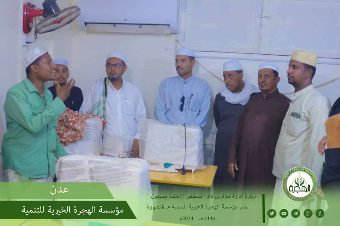 استقبلت إدارة مؤسسة الهجرة الخيرية للتنمية بمقرها بعدن ممثلة بالمدير التنفيذي للمؤسسة الأستاذ علي باحميش ، إدارة مدارس دار المصطفى الأهلية بسيئون في وادي حضرموت ، وذلك لتعزيز العلاقة بين المؤسسة والمرافق التعليمية .