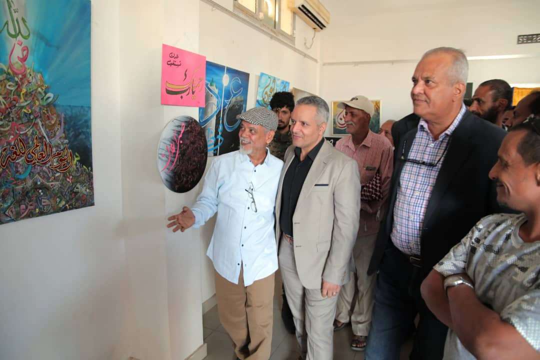 دشن لطفي شطارة رئيس مركز البحوث ودعم القرار بالمجلس الانتقالي الجنوبي ومختار اليافعي نائب رئيس الهيئة الوطنية للإعلام الجنوبي اليوم بالعاصمة عدن معرض الحروفية العربية بعنوان (في حب عدن2) للفنان التشكيلي لبيب توفيق الذي يقام بمناسبة اليوم العالمي للغة العربية المصادف 18 ديسمبر من كل عام.