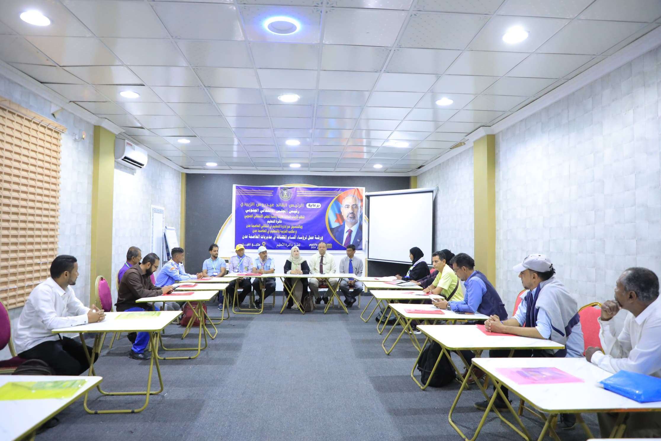 دشنت دائرة التعليم في الأمانة العامة لهيئة رئاسة المجلس الانتقالي الجنوبي، يوم الأربعاء، ورشة عمل لرؤساء أقسام الكشافة في مكاتب التربية والتعليم بمديريات العاصمة عدن، وذلك برعاية الرئيس القائد عيدروس الزبيدي، رئيس المجلس الانتقالي الجنوبي.