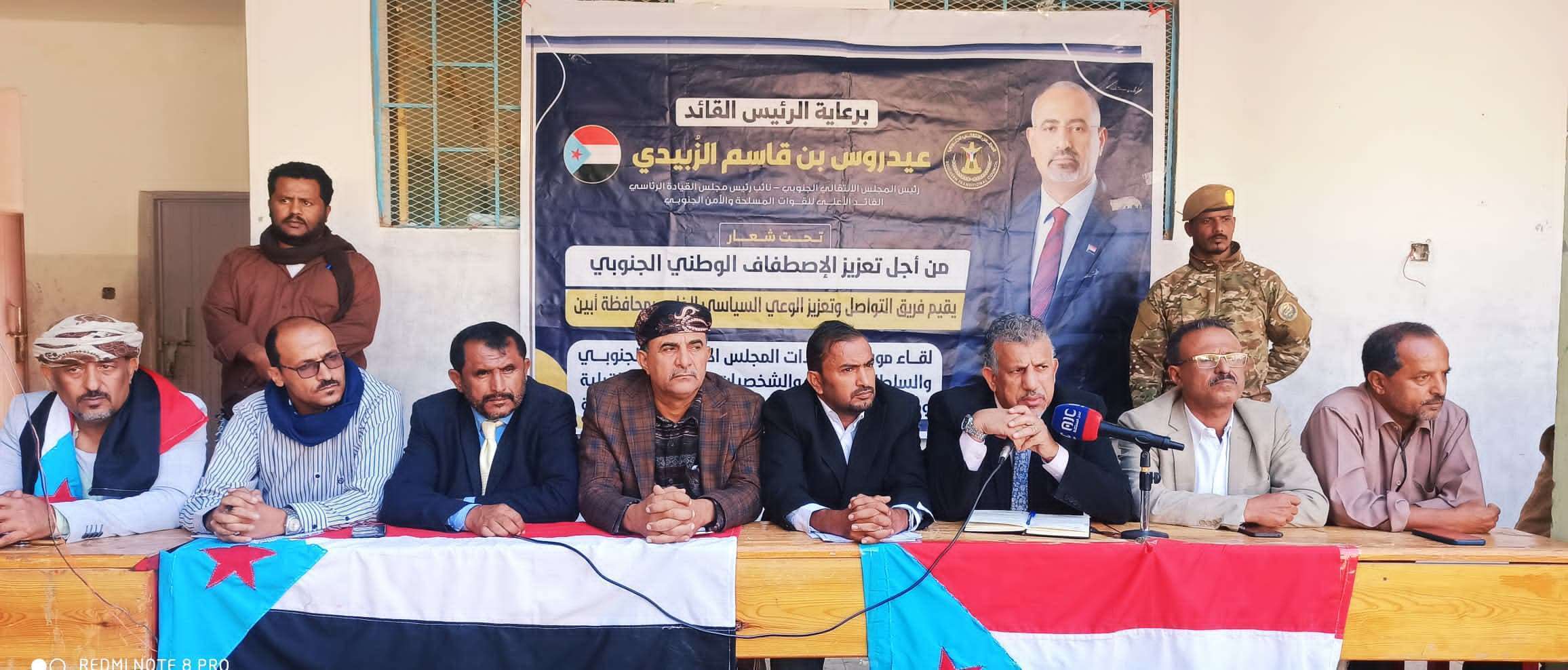 التقى فريق التواصل وتعزيز الوعي السياسي بالمجلس الانتقالي الجنوبي، برئاسة عضو هيئة الرئاسة الأستاذ عبدالناصر الجعري، يوم الخميس، بالقيادة المحلية للمجلس الانتقالي الجنوبي في مديرية سرار بأبين وقيادة السلطة المحلية والشخصيات الاجتماعية والقبلية في المديرية.