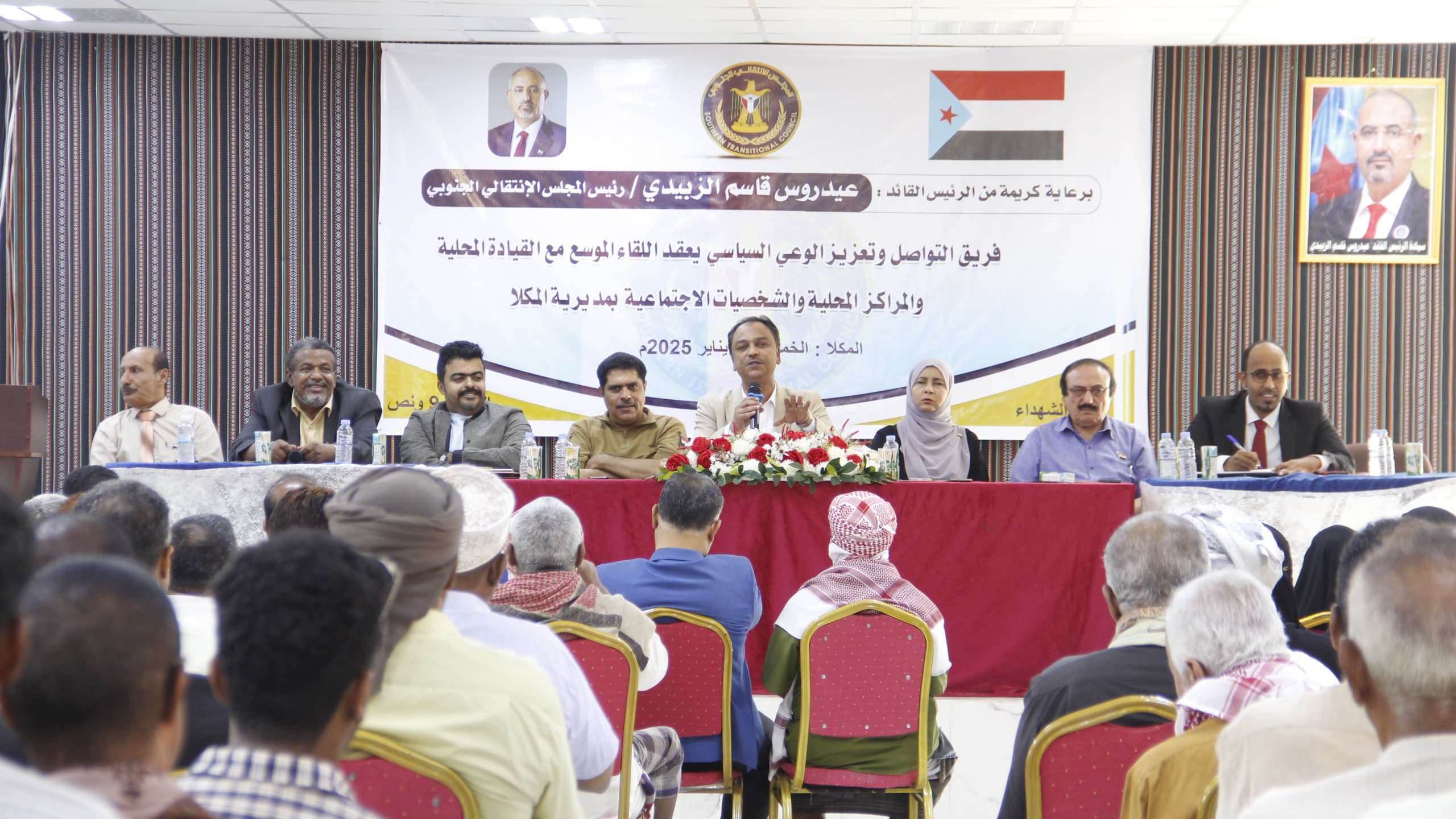 عقد فريق التواصل وتعزيز الوعي السياسي بالمجلس الانتقالي الجنوبي، برئاسة عضو هيئة الرئاسة، فادي حسن باعوم، يوم الخميس، لقاءً موسعًا بالقيادة المحلية والشخصيات الاجتماعية واللجان المحلية بمراكز مديرية المكلا بمحافظة حضرموت.