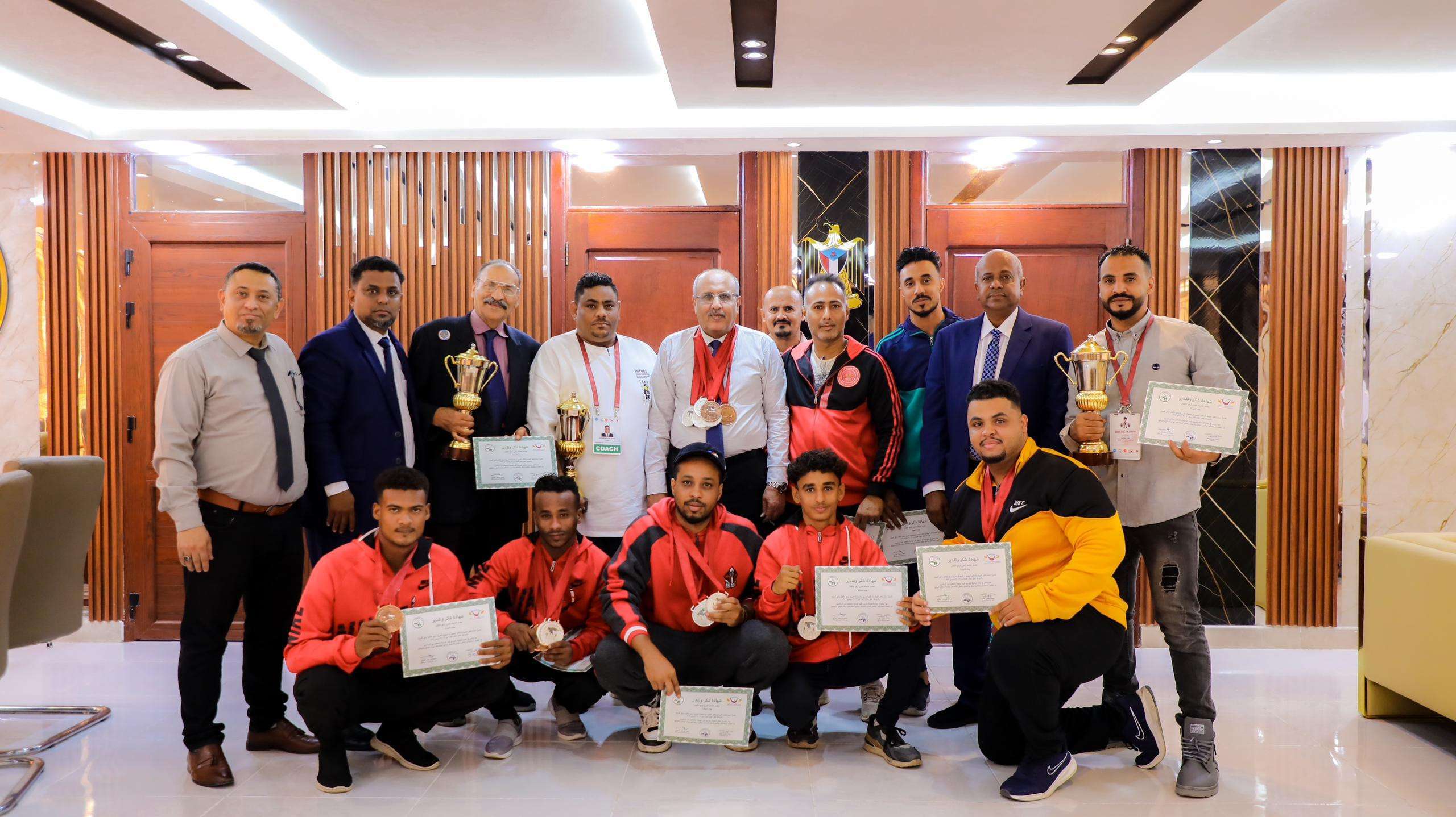 وبارك الكثيري، خلال الاستقبال الذي حضره رئيس لجنة الشباب والرياضة في الجمعية الوطنية، الأستاذ محمد الخليفي، والدكتور جواد مكاوي، رئيس كتلة عدن في الجمعية الوطنية، أفراد البعثة على الإنجاز الكبير الذي حققوه بحصدهم (25) ميدالية بين فضية وبرونزية، مشيدا في ذات السياق بجهود الطاقم الإداري والفني للمنتخب الذين ساهموا في وصوله إلى منصات التتويج، وتسجيلهم حضورًا مشرفًا للعاصمة عدن والجنوب في هذا المحفل الخارجي.