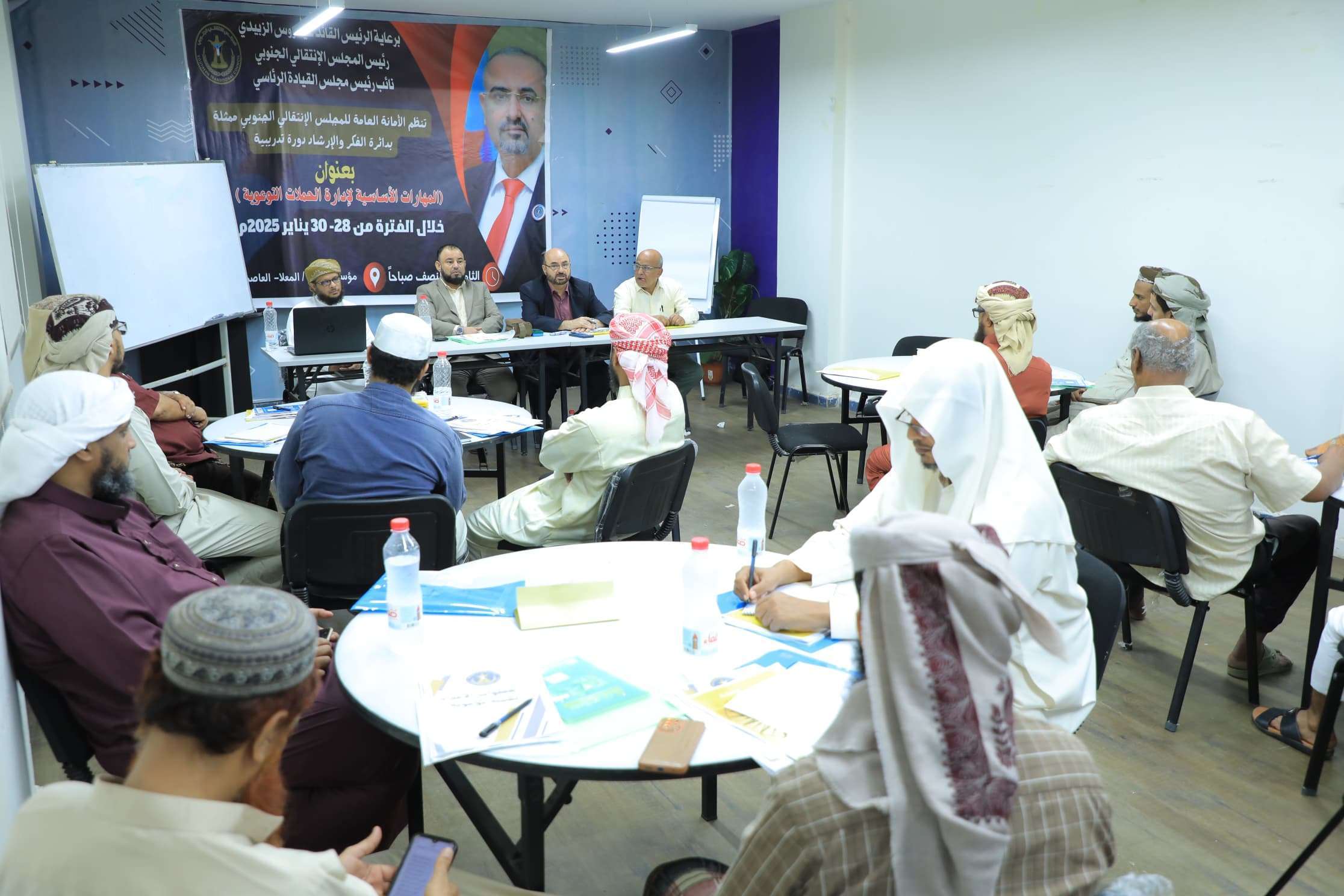 دشنت دائرة الفكر والإرشاد في الأمانة العامة لهيئة رئاسة المجلس الانتقالي الجنوبي، يوم الثلاثاء، دورة تدريبية حول المهارات الأساسية لإدارة الحملات التوعوية.