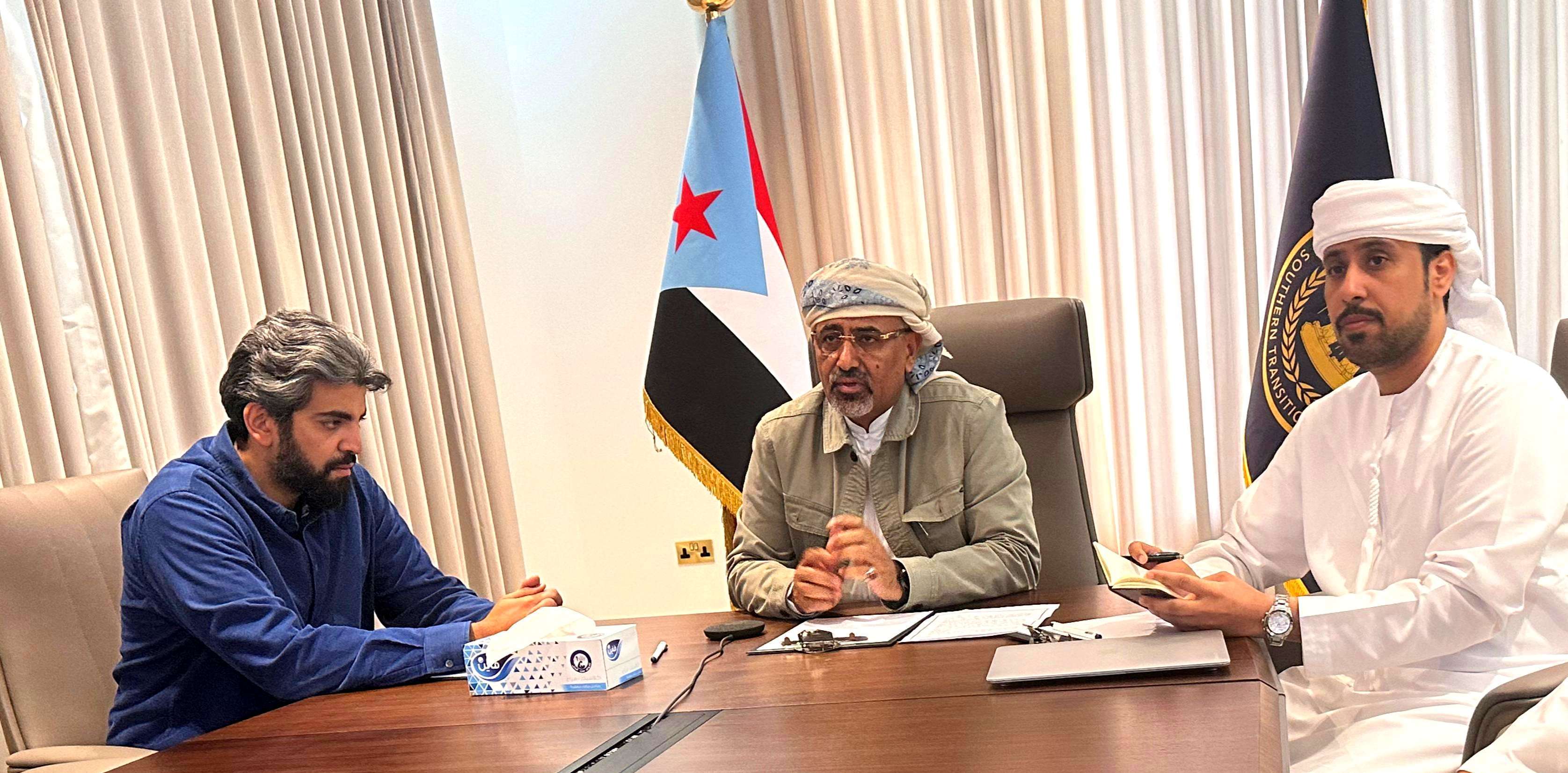 حضر الاجتماع عضوا هيئة رئاسة المجلس الانتقالي الجنوبي محمد الغيثي رئيس هيئة التشاور والمصالحة، وعمرو البيض الممثل الخاص للرئيس الزُبيدي للشؤون الخارجية، وعماد محمد مدير مكتب نائب رئيس مجلس القيادة الرئاسي.