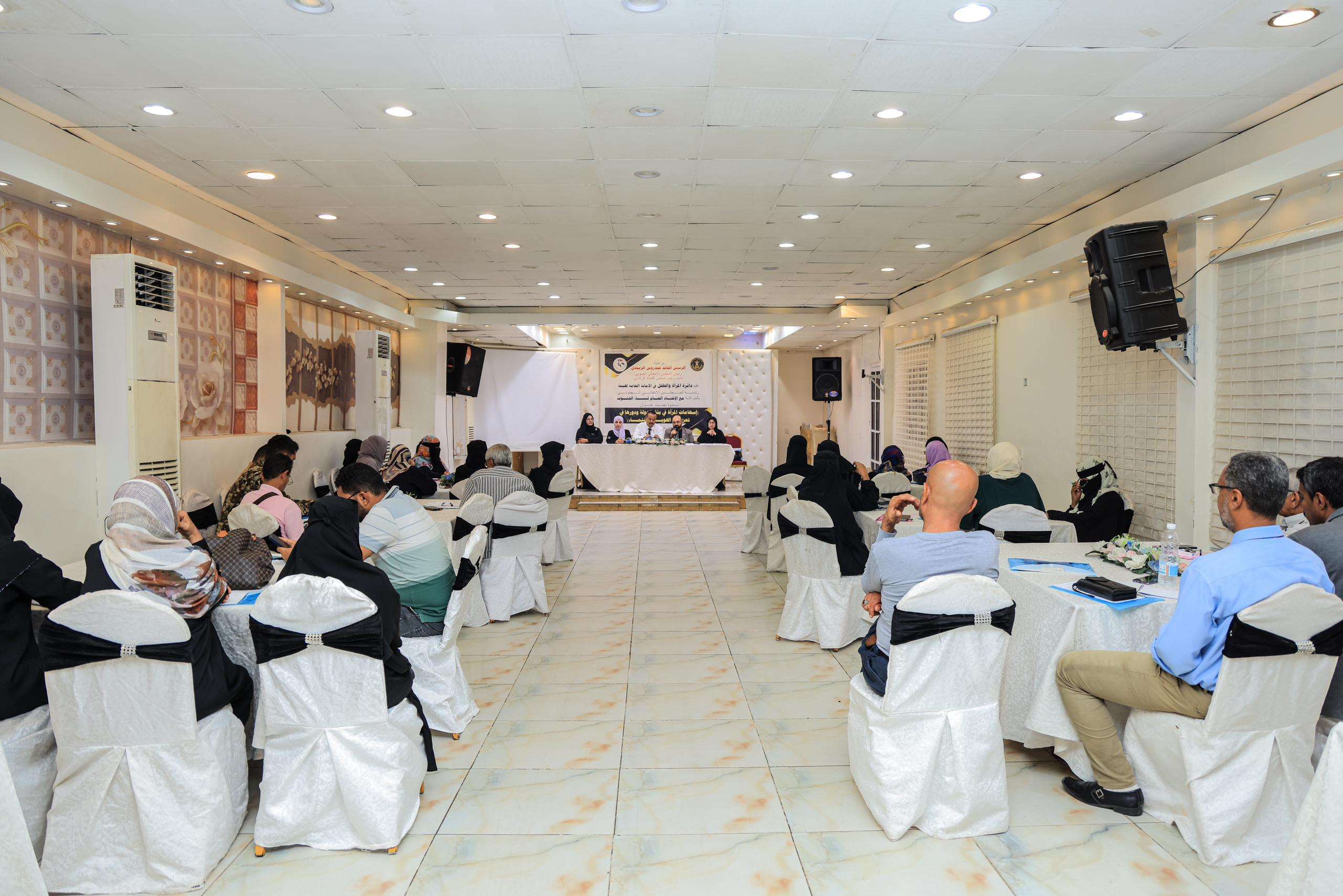 نظّمت دائرة المرأة والطفل في الأمانة العامة، يوم الثلاثاء بالعاصمة عدن، ندوة بعنوان "إسهامات المرأة في بناء الدولة ودورها في تعزيز الهوية"، برعاية الرئيس القائد عيدروس الزبيدي رئيس المجلس الانتقال، وبحضور عدد من الشخصيات الأكاديمية والمهتمين بقضايا المرأة والتنمية.