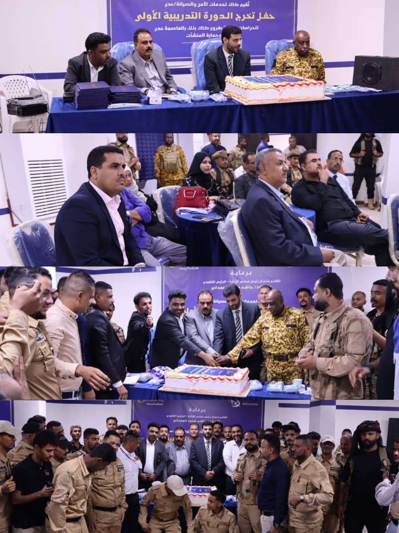 أقام بنك التسليف التعاوني والزراعي حفل تخرج الدورة التدريبية الأولى للحراسات الأمنية في فروع البنك بالعاصمة عدن، وذلك بحضور القائم بأعمال رئيس مجلس الادارة الرئيس التنفيذي الأستاذ حاشد الهمداني، ومساعد نائب الرئيس التنفيذي لقطاع الأمن والصيانة الأستاذ مثنى الشعيبي، وقائد حراسات منشأت عدن العقيد محمد علي السمنتر عدد من القيادات الإدارية والأمنية .