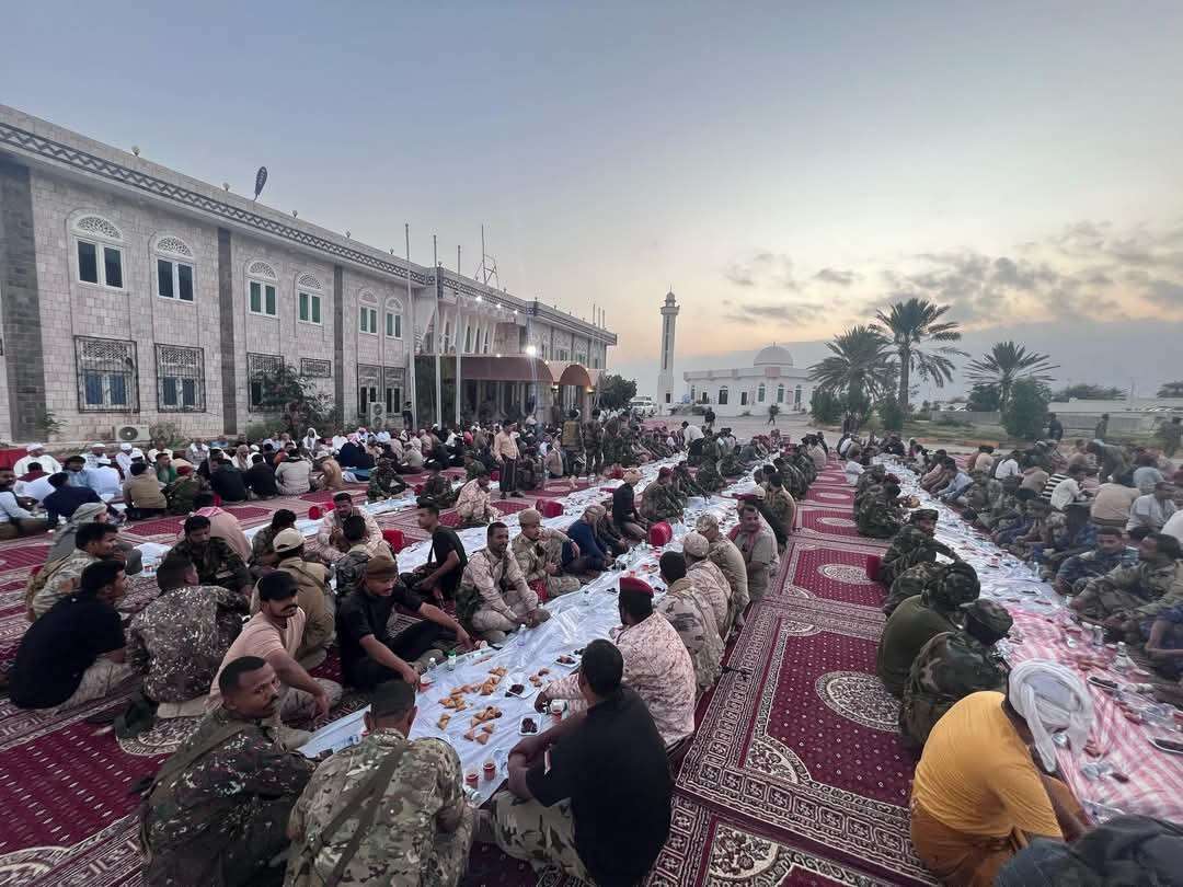 وخلال المأدبة، التي حضرها محافظ حضرموت، الأستاذ مبخوت بن ماضي، ورئيس الهيئة التنفيذية للقيادة المحلية للمجلس الانتقالي الجنوبي بالمحافظة، العميد الركن سعيد المحمدي، وعدد من وكلاء المحافظة، وقائد المنطقة العسكرية الثانية، اللواء الركن طالب بارجاش، والمدير العام للأمن والشرطة بساحل حضرموت، العميد مطيع المنهالي، تبادل الحاضرون التهاني والتبريكات بمناسبة حلول شهر رمضان المبارك، سائلين الله أن يعيده على شعبنا وقد تحققت جميع تطلعاته وأهدافه.