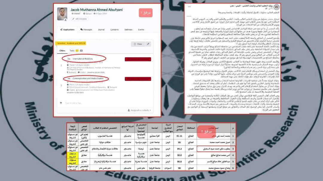 1. بتاريخ (6 مارس 2025) قامت وزارة التعليم العالي بنشر بيان رسمي على منصاتها الإعلامية، تضمن اتهامات مباشرة لي بمحاولة "ابتزاز الوزارة" و"نشر الأكاذيب" و"تزوير البيانات"، دون أي دليل قانوني أو تحقيق رسمي يثبت هذه المزاعم.