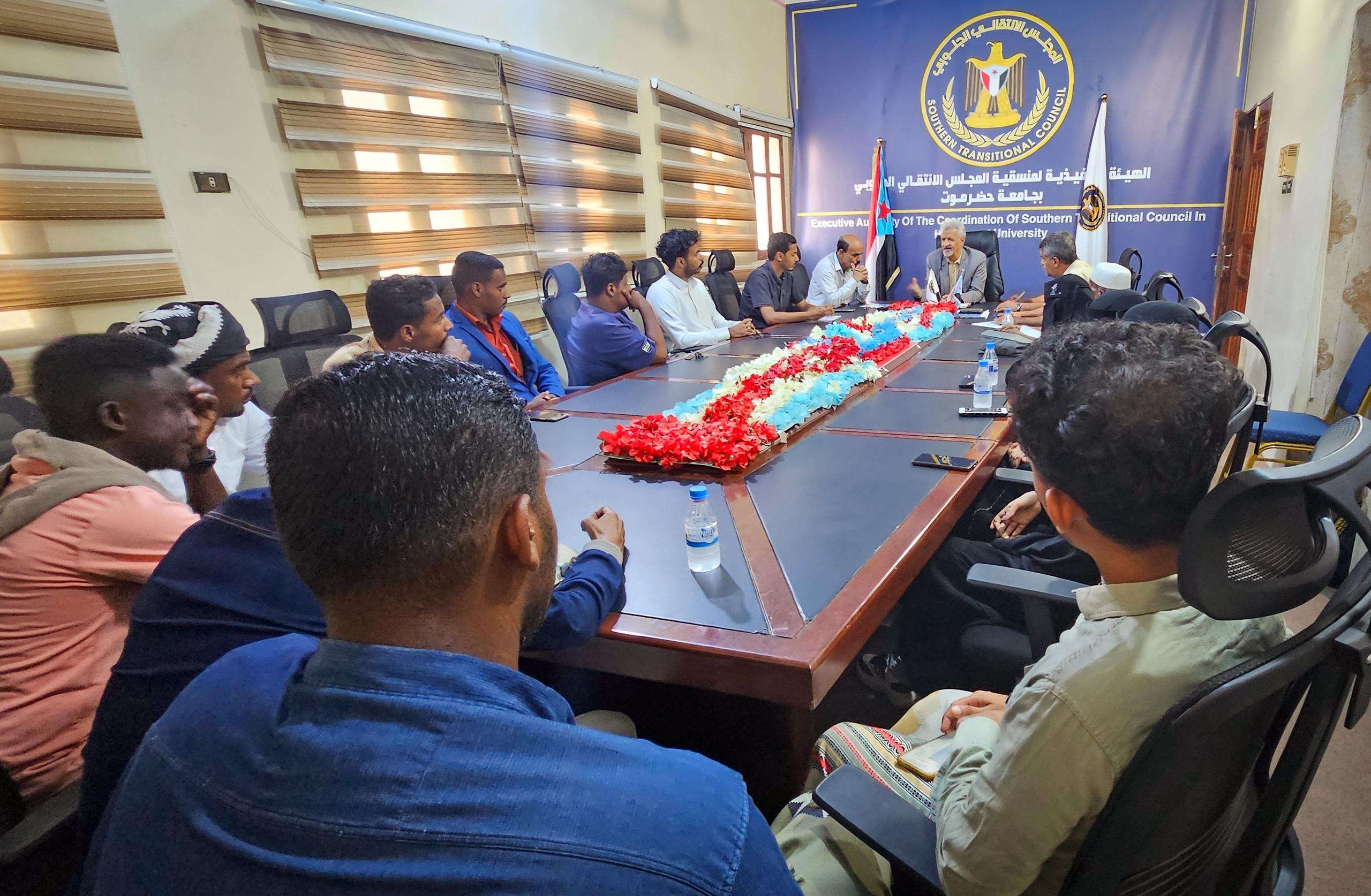 عقد فريق التوجيه والرقابة الرئاسية، برئاسة عضو هيئة رئاسة المجلس، الدكتور عيدروس اليهري، يوم الأحد، لقاءً موسعًا مع قادة الفرق والمنتديات والملتقيات الطلابية الجامعية بحضرموت.