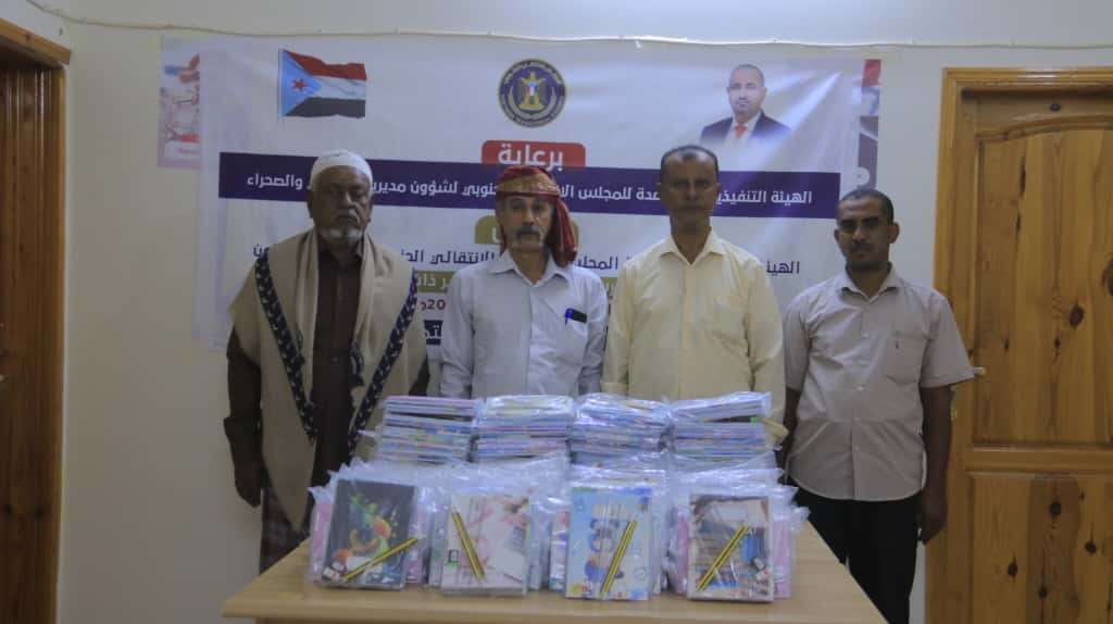 دشّن قسم الشؤون الاجتماعية والجماهيرية بالهيئة التنفيذية للقيادة المحلية للمجلس الانتقالي الجنوبي في مديرية سيئون بمحافظة حضرموت، اليوم الأربعاء، مشروع توزيع الحقيبة المدرسية على طلاب الأسر ذوي الدخل المحدود بالمديرية.