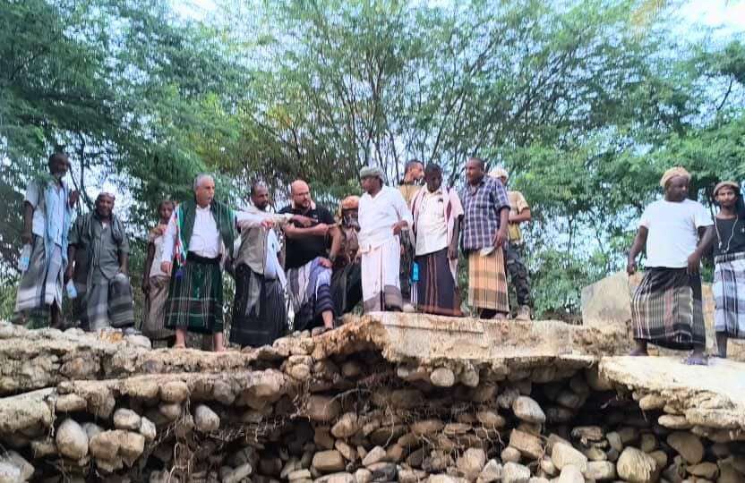 الشعيبي و الجفري يتفقدان أضرار السيول في منطقة جزول بمديرية حجر حضرموت