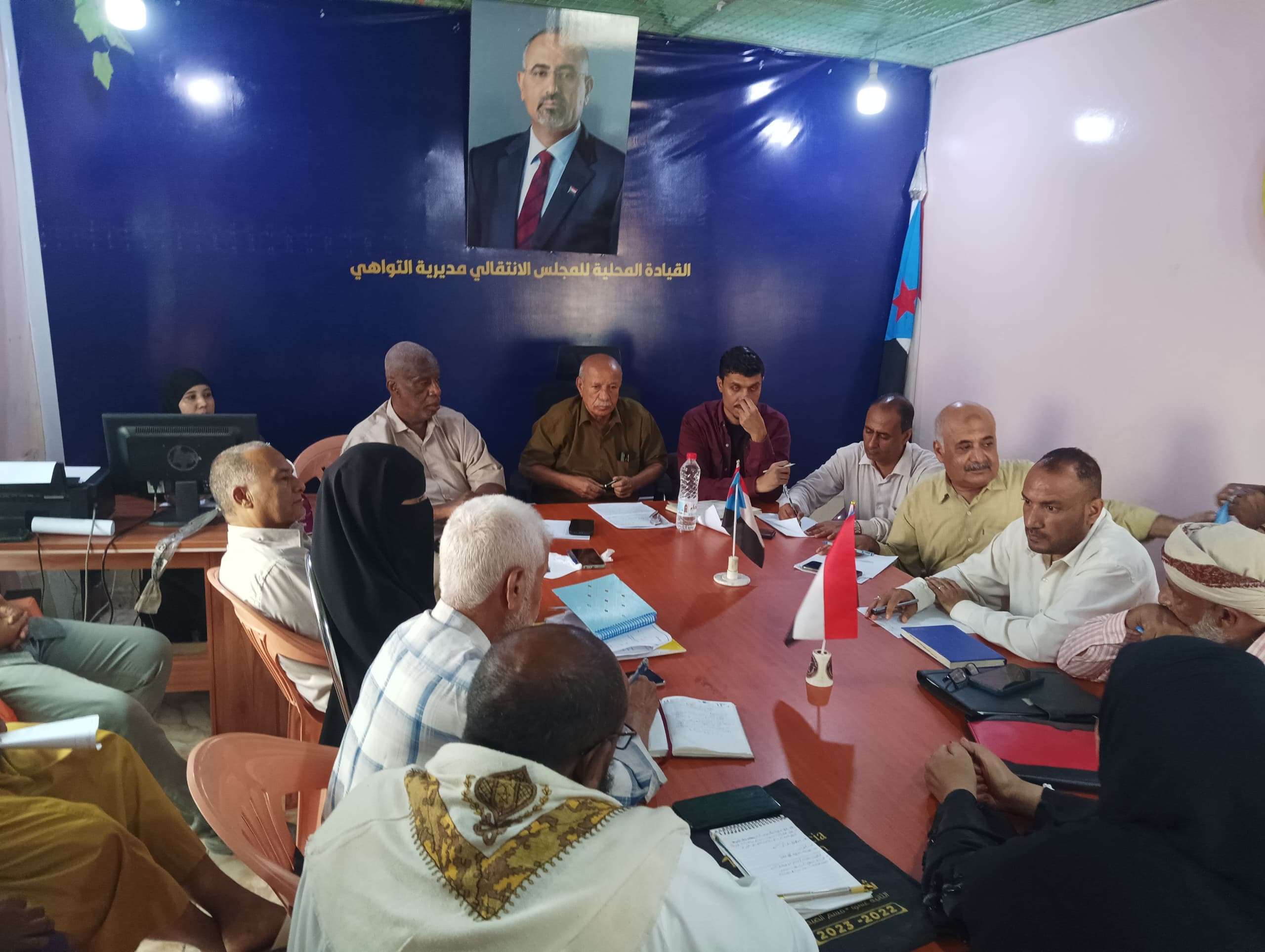 وخلال اللقاء، رحّب رئيس تنفيذية انتقالي التواهي، أحمد عبدي، بأعضاء الفريق، مشيدا بجهود القيادة السياسية للمجلس الانتقالي الجنوبي في متابعة الأداء التنظيمي، والإشراف المباشر على نشاط القيادات المحلية في مديريات العاصمة عدن ومحافظات الجنوب.