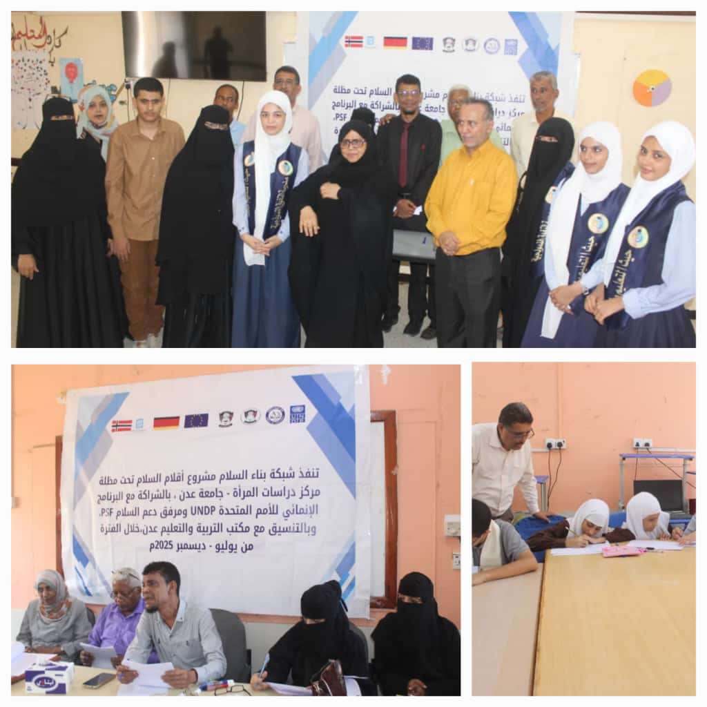 اختتمت شبكة بناء السلام تحت مظلة مركز دراسات المرأة – جامعة عدن، وبتمويل من البرنامج الإنمائي للأمم المتحدة (UNDP) ومرفق دعم السلام (PSF)، وضمن مشروع "أقلام السلام"، وبالتنسيق مع مكتب التربية والتعليم بعدن، فعاليات التصفيات الطلابية في المسابقة الأدبية التي شملت ثلاثة مجالات: الشعر، القصة القصيرة، والمقال الأدبي، بمشاركة طلاب وطالبات من مديريات المعلا، التواهي، خور مكسر، وصيرة بمحافظة عدن.