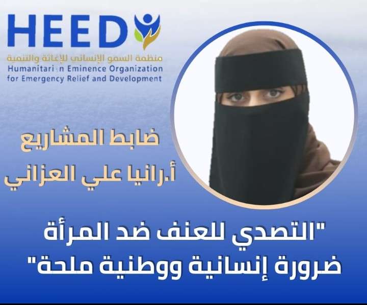 شددت أ. رانيا علي العزاني ضابط المشاريع في منظمة السمو الإنساني للإغاثة والتنمية على أن مواجهة العنف القائم على النوع الاجتماعي ليس مجرد التزام حقوقي بل ضرورة إنسانية ووطنية ملحة لحماية المرأة وتعزيز استقرار المجتمع.