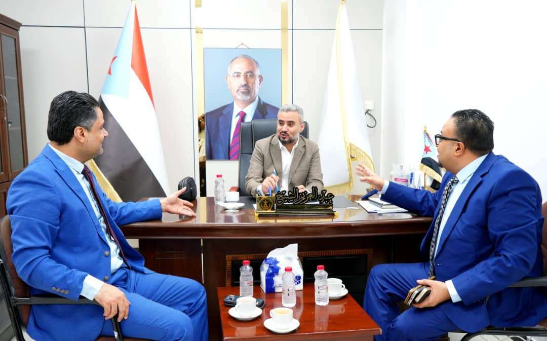 التقى رئيس هيئة الإعلام والثقافة في الأمانة العامة لهيئة رئاسة المجلس الانتقالي الجنوبي، عبدالعزيز الشيخ يوم الأحد، بنائب وزير الإعلام والثقافة والسياحة صلاح عبدالله العاقل، ورئيس مجلس إدارة مؤسسة 14 أكتوبر للصحافة والطباعة والنشر محمد باشراحيل.