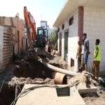 فرق مؤسسة مياه عدن تعمل على إصلاح كسر في محطة ضخ الصرف الصحي بالمنصورة