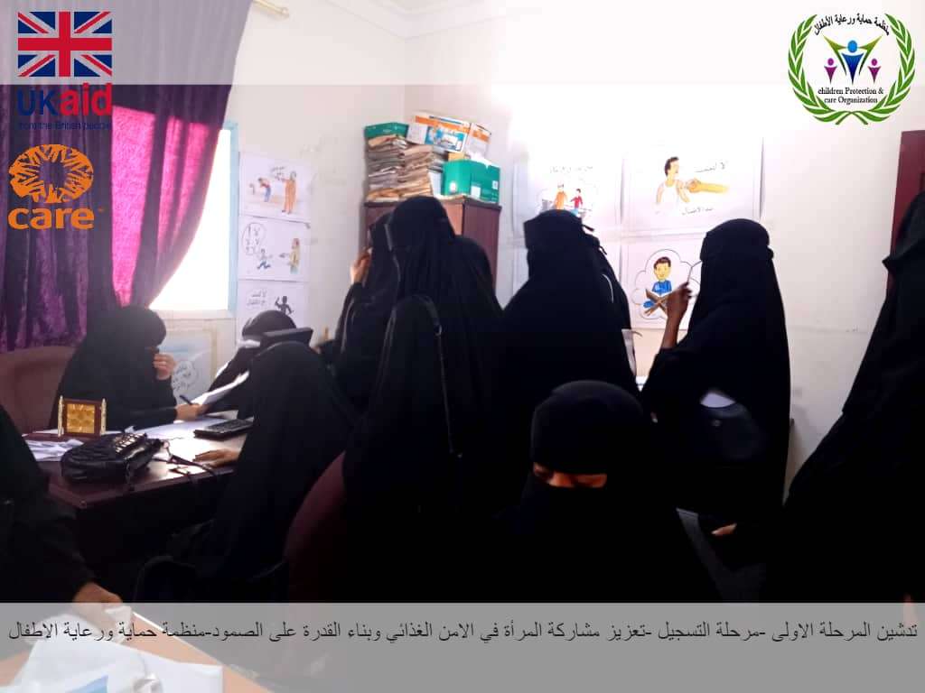 دشّنت منظمة حماية ورعاية الأطفال مشروع "تعزيز مشاركة المرأة في الأمن الغذائي وبناء القدرة على الصمود" في مديرية البريقة بمحافظة عدن وذلك لاستكمال عملية تسجيل واختيار المستفيدات وفق المعايير المحددة والبالغ عددهم اربعمئة وخمسه عشر أمرأة وسيتم استقطاب عشرين من النساء الاشد فقرآ بالمديرية البريقة.