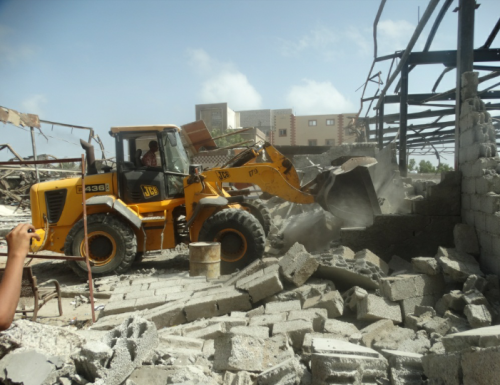 تم صباح اليوم تنفيذ الحملة الثالثة لعملية إزالة البناء العشوائي بمديرية المعلا بمحافظة عدن ٠
