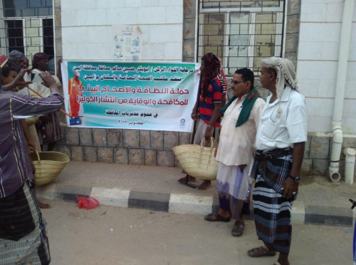 ومن جانبة عبر الأخ أحمد المدحدح منسق الاعلام والتثقيف الصحي عضو فريق الاستجابة السريعة لوباء الكوليرا بالمديرية عن أهمية النظافة العامة المتمثلة في نظافة البيئة من شوارع ونظافة مياة الشرب والماكل وهي أهم مصدر العدوي بالكوليرا وبنظافتهما نكون قد جنبنا مجتمعنا الاصابة بوباء الكوليرا.