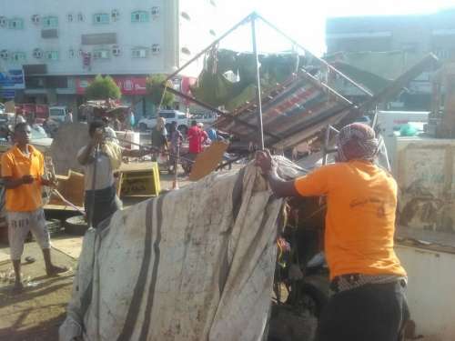 قام مدير عام مديرية البريقة بمحافظة عدن هاني محمد اليزيدي ، بالإشراف المباشر على أعمال حملة لرفع وإزالة البسطات العشوائية من الشارع العام للمديرية " شارع الدوح " .