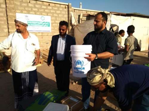 دشن مدير عام مديرية البريقة بمحافظة عدن هاني محمد اليزيدي ، مشروع توزيع توزيع المواد الايوائية للاسر النازحة في مخيم النازحين بمدينة الشعب في المديرية والذي تنفذه منظمة (cssw ) ، بدعم من المفوضية السامية للأمم المتحدة لشؤون اللاجئين .