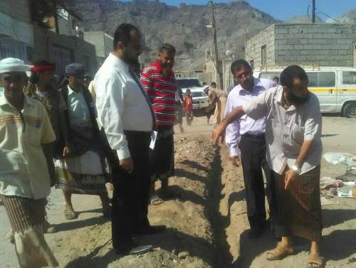 تفقد مدير عام مديرية البريقة بمحافظة عدن هاني محمد اليزيدي ، سير العمل في مشروع إعادة تأهيل الشبكة الداخلية للمياة لمنطقة الزحف الأحمر بالمديرية .
