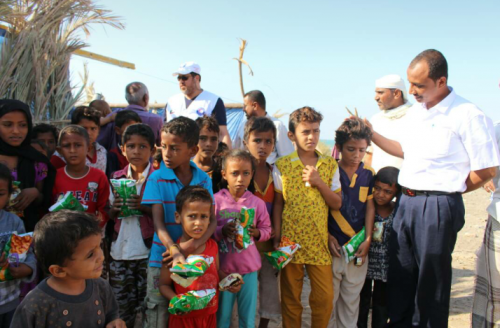 دشن يومنا هذا السبت 2017/12/30 مدير أمن محافظة الحديدة المقدم صادق عطية توزيع مائة سلة غذائية بدعم من مؤسسة تهامة للتنمية على نازحي المحافظة بمنطقتي شقرة و الكود الواقعة بمحافظة أبين .