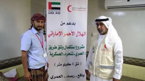 وقع الهلال الأحمر الإماراتي صباح اليوم اتفاقية تمويل مشروع استكمال شق طريق (العمري - تنحرة - العسكرية) بيافع رصد بطول ٦ كيلو متر.