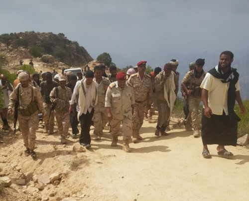رافقهما خلال الزيارة قائد المقاومة القبيطة العقيد حسن سالم و ركن استطلاع المنطقة العسكرية العقيد الركن محمد فريد و ركن عمليات اللواء الثاني حزم العقيد الركن محمد محسن الجحافي.