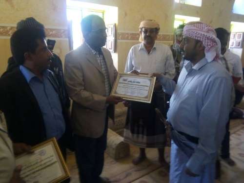 و تناول الوفد وجبة الغداء بمنزل رجل الاعمال مصلح حسين القربعي حيث قدم مدير عام التربية بمحافظة شبوة و مدير عام التربية بيحان الاستاذ سالم سالم صوفي شهادة تقديرية لرجل الاعمال مصلح حسين القربعي و ذلك تقديرا و عرفانا بما قدمة القربعي من دعم سخي في مجال التربية بالمديرية ، و قدم مدير عام بيحان الاستاذ احمد صالح الطاهري مدير عام بيحان شهادة تقديرية باسم السلطة المحلية بالمديرية لرجل الاعمال مصلح حسين القربعي لدورة في تقديم الدعم لمختلف المجالات ببيحان و منها التربية و الصحة و الشباب .