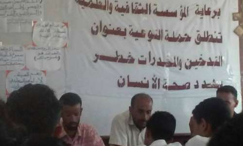 حملة توعوية وثقافية بعنوان « التدخين والمخدرات خطر يهدد صحةالإنسان » وكانت تلك الحملة التوعوية الثقافية قد أقيمت في إحدى قاعات ثانوية الصديق النموذجية في عاصمة مديرية الأزارق .