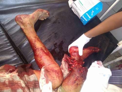الحاج حميد يوسف الدحفري والبالغ من العمر 65 عاماً أصابته تلك القذائف وبترت القذيفة ساق رجله اليسرى مباشرةً وحالته خطيرة والحاج طالب الظُليمي 72 عاماً إمام المسجد في سوق الجمعة .