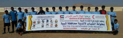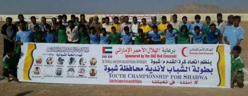 برعاية الهلال الأحمر الإماراتي وتحت شعار ( أمننا في نخبتنا) أنطلق عصر اليوم السبت على ملعب الفقيد ناصرالخليفي بمدينة عتق بطولة فئة الشباب لكرة القدم لأندية شبوة لعام 2018م بحضور رسمي وشعبي وجماهيري.