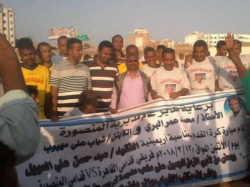 أقيمت عصر اليوم الاثنين 12/مارس/2018م بملعب مدرسة الفقيد إدريس حنبلة وبرعاية من الأستاذ محمد عمر البري مدير عام مديرية المنصورة والكابتن شهاب علي مهيوب مبارة كرة قدم بين فريق نجوم الزمن الجميل ونجوم القاهرة "أصدقاء الفقيد" بذكرى أربعينية الفقيد عبده حسن عوبل.