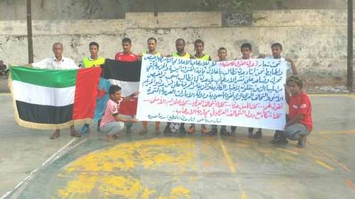 تحت شعار (عدن تقول كلمتها) لا للإرهاب الإعلامي التامري الرخيص والهابط نحن أبناء عدن نطالب بإغلاق كافة القنوات اليمنية والحزبية التي تحرك وتساعد على نشر الإرهاب في عدن كما نطالب بسحب تراخيص مراسليها الذين ينقلون الأخبار الكاذبة والمزيفة والمحرضة على أمن عدن والحزام الأمني والتحالف العربي الذي تقوده السعودية ودولة الإمارات العربية المتحدة .. نقول لهم كلنا أمن عدن .. كلنا التحالف العربي .. كلنا الحزام الأمني .. كلنا شركاء مع دول التحالف العربي في محاربة الإرهاب شباب ورياضي أبناء عدن حي القطيع مديرية صبرة.