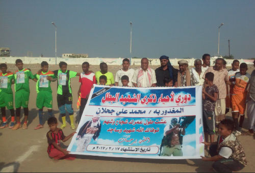 بحضور راعي رياضة أبين الكابتن أحمد صالح الراعي مدير عام مكتب الشباب والرياضة والشيخ أحمد عبدالله سعيد الشحيري أقيمت عصر اليوم الجمعة على ملعب نادي الفجر الجديد بالكود المباراة الافتتاحية لدوري الشهيد « محمد علي جحلان » للفرق الشعبية.