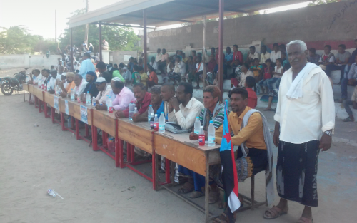 فيصل باعرفه رئيس المجلس الانتقالي الجنوبي م/ خنفر والكابتن جدي مهدي مدير الانشطة الرياضية والكابتن سعيد نعوم وعبده الحاج علي مدير المعهد المهني بالكود وجمع غفير من عشاق كرة القدم بالكود.