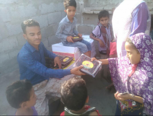 دشنت اليوم جمعية بسمة أمل الخيرية بمحافظة أبين في قرية المسيمير توزيع التمور لـ 163 أسرة من نازحي الحديدة المتواجدين بالمنطقة و200 أسرة فقيرة من أصحاب القرية بدعم من منظمة تجديد .