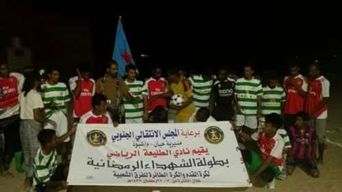 برعاية القيادة المحلية للمجلس الانتقالي الجنوبي بمديرية حبان محافظة شبوة أقيمت المباراة الافتتاحية لبطولة الشهداء الرمضانية لكرة القدم وكرة الطائرة للفرق الشعبية .