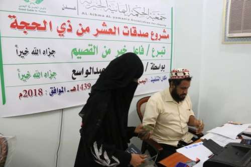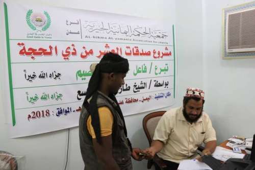 دشنت جمعية الحكمة اليمانية الخيرية عدن يومنا هذا الأثنين الموافق : 2018/8/20 برنامج توزيع الصدقات النقدية للمعاقين وللأسر الفقيرة في اقليم عدن بدعم كريم من فاعل خير من القصيم جزاه الله خيراً .
