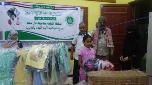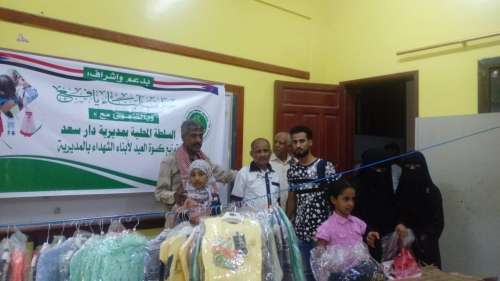 تسلم أبناء الشهداء في مديريات العاصمة عدن كسوة العيد المقدمة من حلف أبناء يافع تزامنا مع عيد الأضحى المبارك ،ووفاء وعرفان وتقديرا وردا للجميل لإبناء وأسر الشهداء الأبطال الذين سطروا أروع الملاحم والتضحيات للدفاع عن أرضهم ووطنهم ودينهم وتحرير مدينتهم بعد حرب دامت أربعة أشهر ضد الاجتياح العسكري الذي شنته قوى الانقلاب في العام 2015 على عدن وأخواتها .