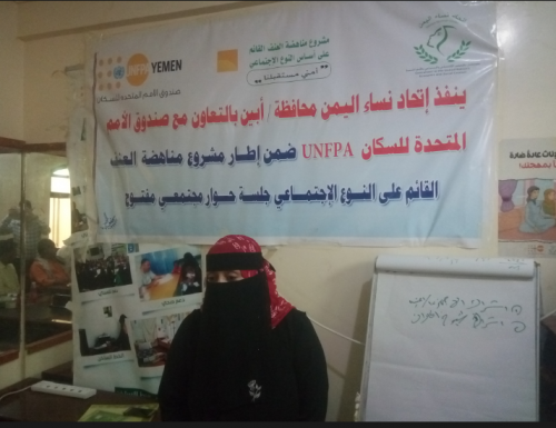 الاستاذة آمنة رئيسة اتحاد نساء اليمن بأبين قالت في تصريح خاص : تم في الجلسة مناقشة مايهدف اليه المشروع التوعوي من نشر التوعية بين أوساط النساء خاصة في ماتتعرض له النساء من عنف أسري وعنف جسدي وعنف نفسي مع شيوخ بعض الحارات ومع بعض الشخصيات الاجتماعية التي هي شريكة مع اتحاد نساء اليمن في هذا الجانب.