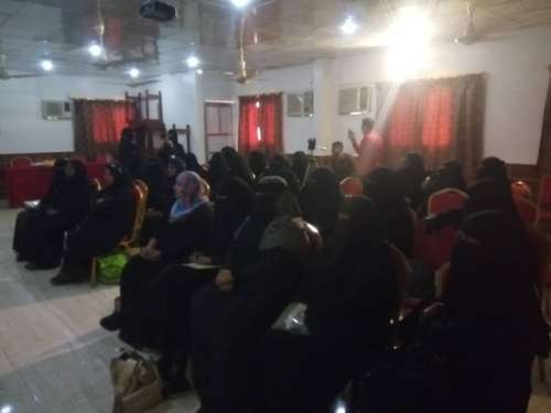 دشنت منظمة حق للدفاع عن الحقوق والحريات في محافظة ابين صباح اليوم الثلاثاء 22 يناير 2019 م في قاعة نور بزنجبار بأبين الدورة التدريبية والتأهيلية الثالثة والأخيرة لرائدات أبين المجتمعيات والقيادات النسوية ضمن برنامج ( رائدات مجتمعيات من أجل أبين ) الذي نفذته منظمة حق خلال الأشهر أكتوبر 2018م - يناير 2019م لهدف رفع مستوى الوعي القيادي لدى الرائدات المجتمعيات والقيادات النسوية وناشطات المجتمع المدني في أبين وتشجيعا لمبدأ حق المرأة في المشاركة في صنع القرار والإسهام في حل القضايا المجتمعية وقضايا حقوق الإنسان الملحة في المجتمع المحلي .