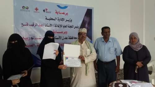 حضر التدشين مدير الاتحادات والجمعيات بمكتب الشؤون الاجتماعية والعمل بعدن / عصام وادي /.وطاقم المؤسسة .