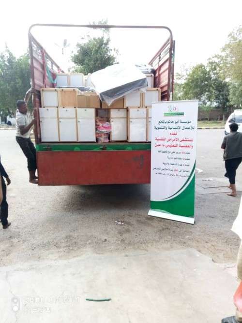 قامت مؤسسة ابو حاتم بانافع للاعمال الانسانية والتنموية بتقديم اثاث لمستشفى الامراض النفسية والعصبية التعليمي بمحافظة عدن ضمن انشطتها لدعم المرافق الصحية والخدمية وقد اشتملت هذه المساعدات على 52 سرير بكامل تجهيزاتها كما قدمت 150 طقم ملابس للجنسين ومكتبين ادارية اضافة الى عربات ادوية