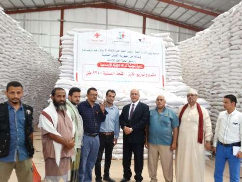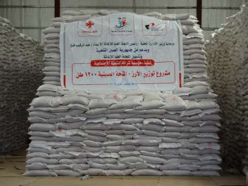 دشن وزير الإدارة المحلية رئيس اللجنة العليا للإغاثة عبدالرقيب فتح اليوم بالعاصمة المؤقتة عدن المرحلة السادسة لتوزيع 1200 طن من الارز المقدم كمنحة من جمهورية الصين الشعبية للشعب اليمني والذي تنفذه مؤسسة شراكة للتنمية الاجتماعية (S.D).