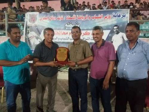 كرمت قيادة الرياضة والاتحادات والأندية الرياضية بالعاصمة المؤقته عدن مساء امس ، معالي نائب رئيس مجلس الوزراء وزير الداخلية المهندس أحمد الميسري بدرع تذكاري تجاه مواقفه الداعمة للرياضة والرياضيين، حيث قام مساء امس المهندس نعمان شاهر مدير عام مكتب الشباب والرياضة بعدن وعدد من قيادات الأندية والاتحادات بتسليم الدرع التذكاري الخاص بمعالي الوزير الميسري إلى العميد عدنان القلعة مدير دائرة الرقابة والتفتيش بوزارة الداخلية الذي استلم الدرع بالنيابة عن الوزير الميسري في ملعب العلواني بالمنصورة بين شوطي مباراة الشعلة والتصامن ضمن منافسات بطولة مريسي 25 الرمضانية.