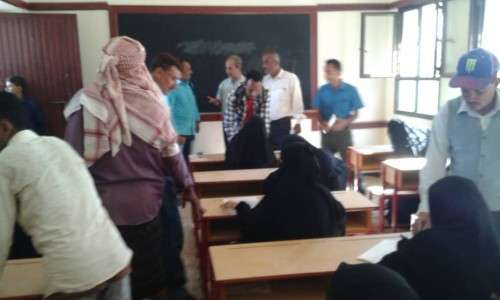 من جهتهم قام ممثلوا الصندوق بتوزيع الطالبات المتقدمات على اربعة فصول دراسية وتوزيع المراقبين على فصول الامتحانات .